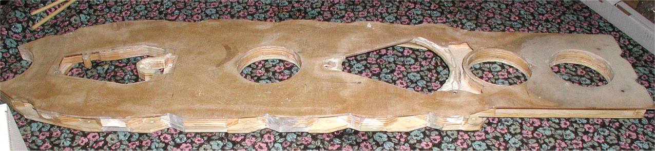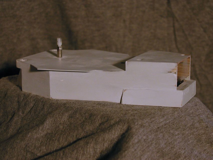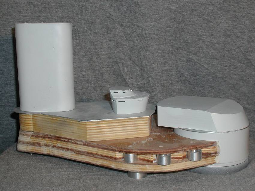 Anfang 2001 Die hinteren Aufbauten Volle Zugänglichkeit zum innenraum ist wichtig ! Die Aufbauten werden steckbar und abnehmbar ausgeführt, in Schichtbauweise aus Sperrholz und Alublech, der innere Kern mit der Hegner Multicut ausgesägt. |