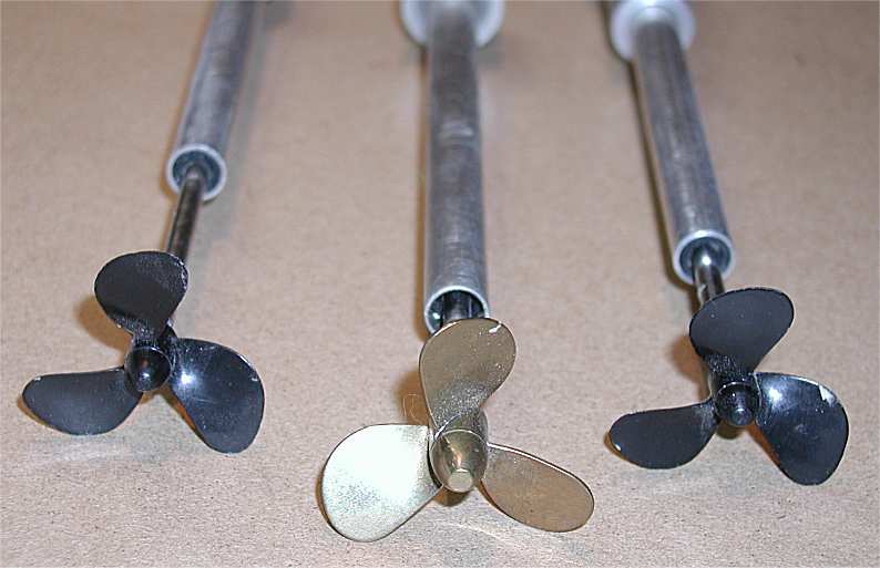 Am fertigen Modell gibts dann natürlich 3 Messing-Schrauben Bis auf die Schrauben, die Motoren und die Wellen sind alle Teile vom Schrott, wie fast alle Metallteile an meinem Schiff. |