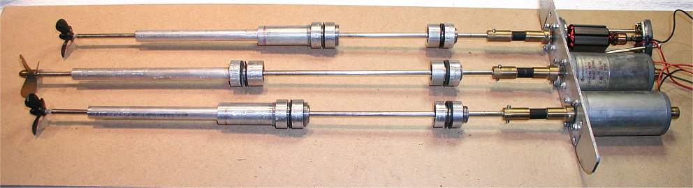 Anfang 2001 Die Wellenanlage. Natürlich komplett selbst gefertigt. Jede Welle ist mehrfach kugelgelagert und mit Wellendichtringen versehen. Die Motoren sind hochwertige Industriemotoren, gebraucht aber superzustand !!! |