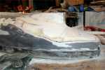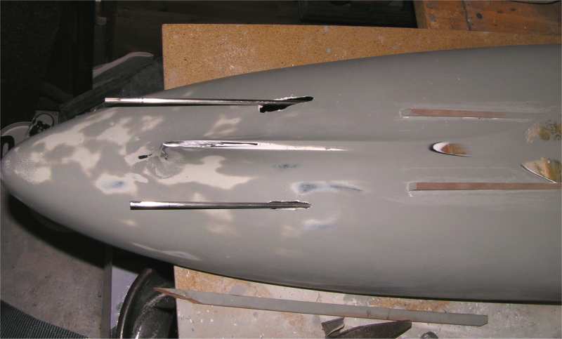 | Ende 2003: Das Heck wird angepasst. Nicht wirklich lustig diese Abschleiferei. Aber was sein muss....Und es sind gravierende Unterschiede zwischen den Modellbau- und den Originalplänen.